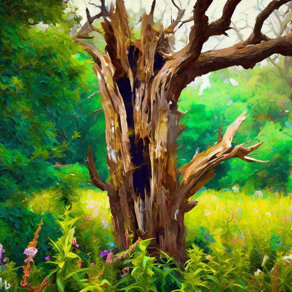 el pozo abierto y la raíz en ruinas.
