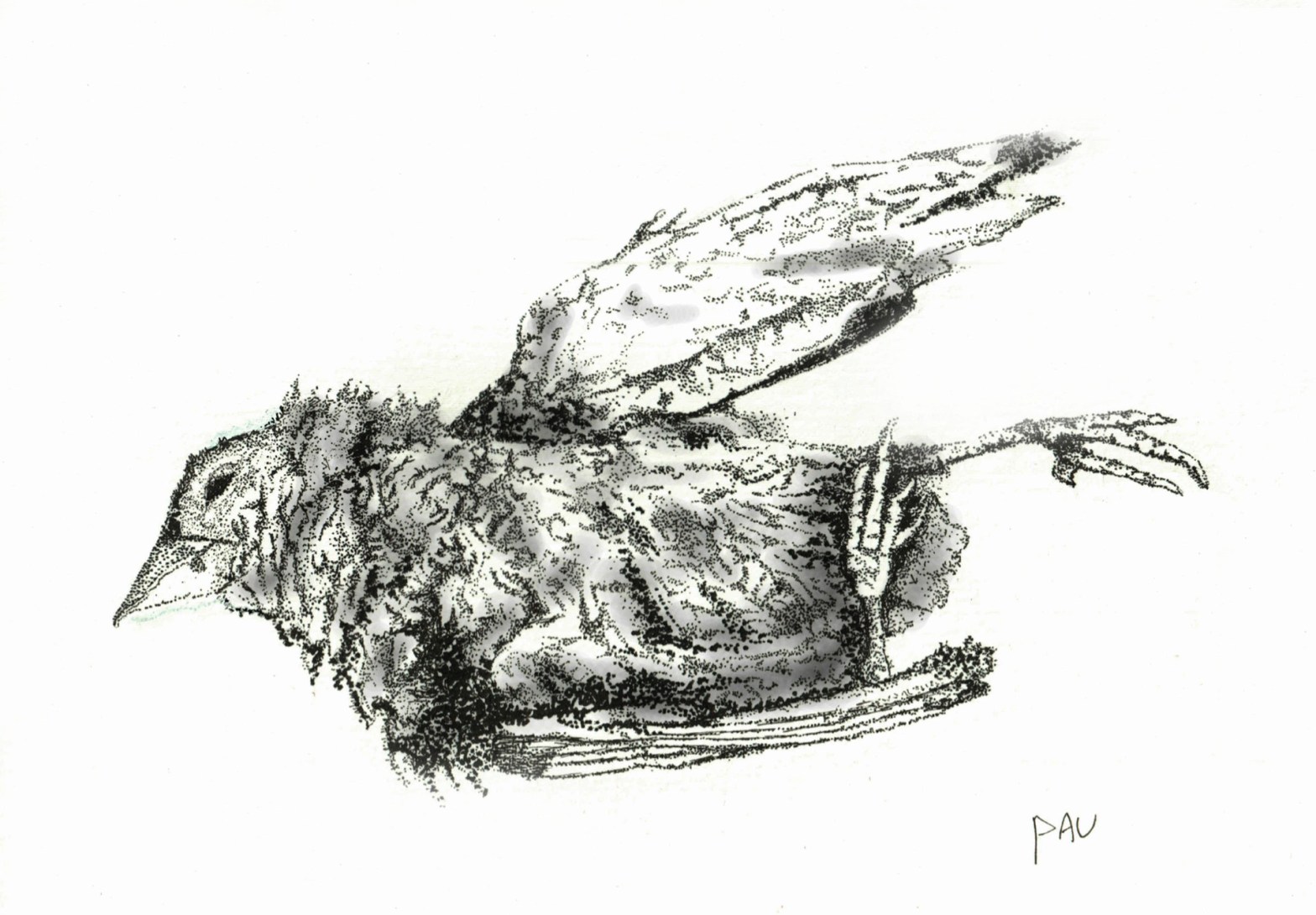 o esqueleto de um pássaro. Entrara